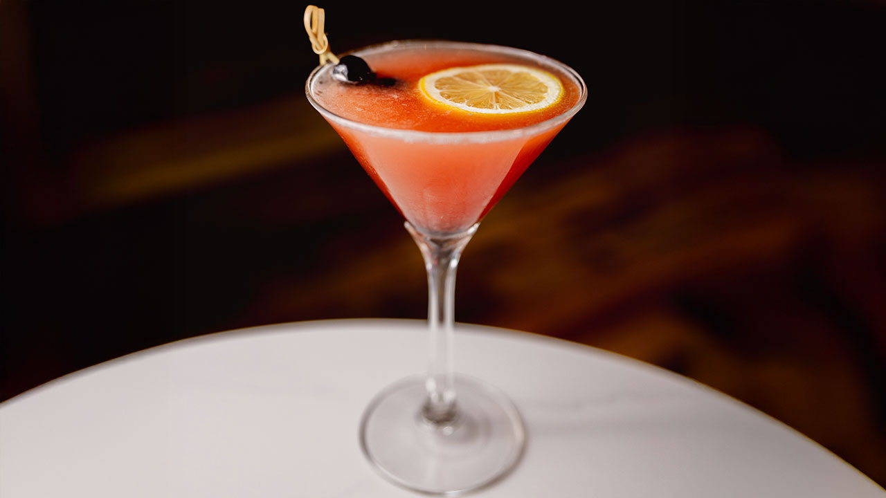 1. Lush Blush Martini – GS Sinner’s Blush Rosé Vodka, Grand Marnier, Fresh Lemon Juice, Monin Strawberry Purée, Soda