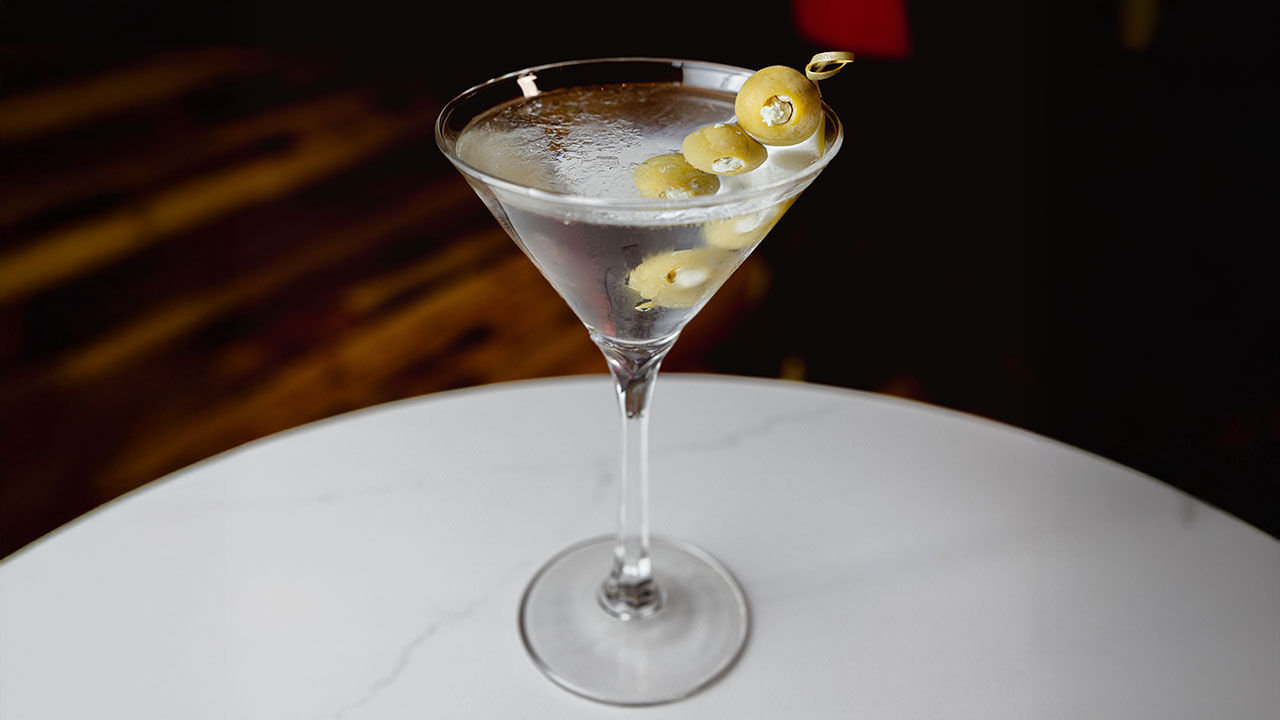 6. The Original Martini – GS Small Batch Gin or Vodka, Dry Vermouth, Orange Bitters, Lemon Twist or Blue/Feta-Stuffed Green Olives